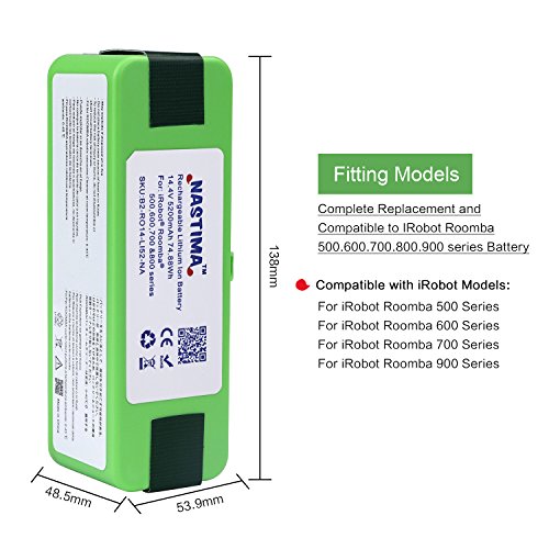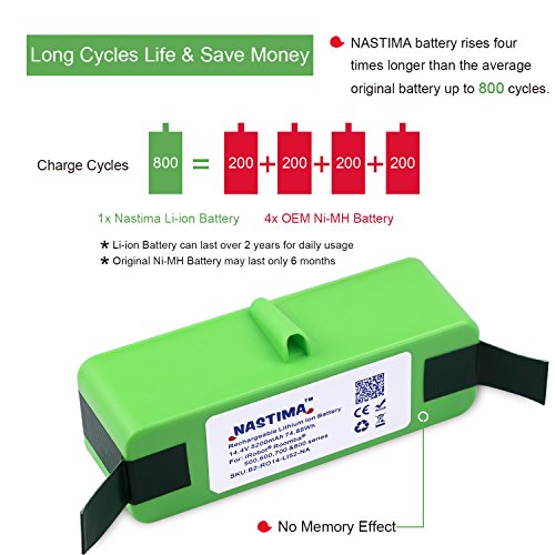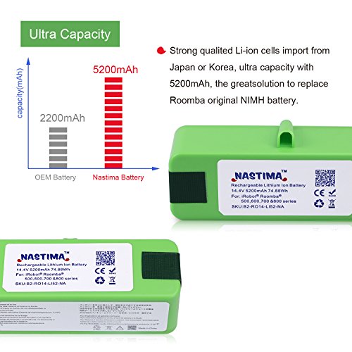 NASTIMA 14.4V 5200mAh Lithium-Akku Langlebige 800 Zyklen Fur iRobot Roomba Cleaner 500 510 530 531 532 533 535 536 540 545 550 552 560 562 565 570 580 581 585 595 600 610 620 625 6