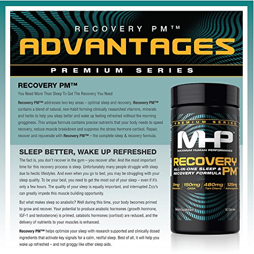 ReleaseDate : 2016-11-14 Studio : Maximum Human Performance Publisher : Maximum Human Performance Binding : Health and Beauty Product Description WHAT IS RECOVERY PM? Recovery PM addresses two key areas - optimal sleep and recovery. Recovery PM contains a blend of natural, non-habit forming clinically researched vitamins, minerals and herbs to help you sleep better and wake up feeling refreshed. WHAT DOES RECOVERY PM DO? This unique formula contains precise nutrients that your body needs to support recovery and reduce muscle breakdown. Repair, recover and rejuvenate with Recovery PM - the complete sleep recovery formula. WHAT MAKES RECOVERY PM BETTER THAN OTHER RECOVERY SLEEP PRODUCTS? While most formulas only support sleep or recovery, Recovery PM does both! So you can sleep better and recover faster during sleep. 0