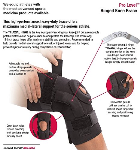 -. Feature : High performance brace that is ideal for weak or injured knees / Provides maximum medial/lateral support without restricting mobility / Produces near-normal joint motion of the knee / Stabilizes and helps protect the kneecap; can be cut to desired shape for proper tracking / Fully-trimmed edges with smooth seams help prevent irritation and chafing