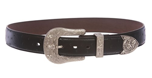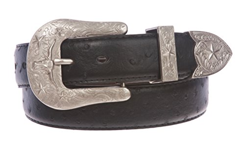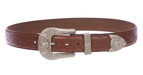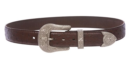 -. Title : Western Ostrich Print Stitching-Edged Leather Belt