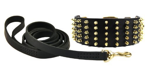 Product Description Wide Spike is a 2-3/4-Inch wide beautiful leather collar with 5 rows of spikes. No Assumptions is our basic leash. Add floating ring for convenience. 0