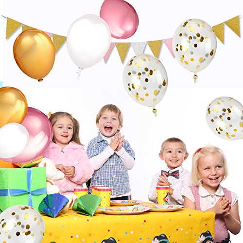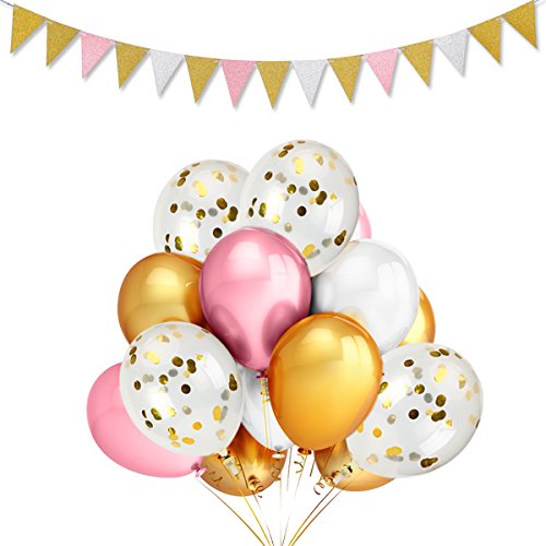-. Title : Gold Confetti Balloons Decoration,12Pcs 12 Inches Gold Confetti Balloons,50 Pack Gold & Pink & White Party Balloons and Vintage Style Pennant Banner,for Wedding Birthday Proposal Party Decorations