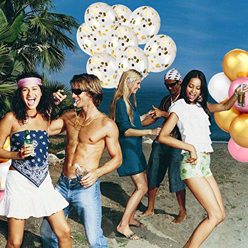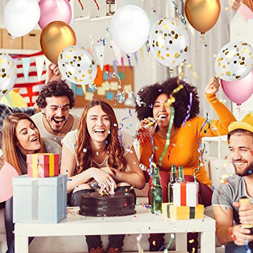 -. Feature : SUFFICIENT PARTY DECORATION SUPPLIES: LeeSky 12pcs Gold Confetti Balloons,50 pack gold & pink & white color latex balloons and 1 pack Gold & Pink & White Color Vintage Style Pennant Banner,Every thing you need for a perfect wedding party decorations. / PERFECT FOR ALL OCCASIONS: Perfect for wedding,birthday,bridal shower,engagement,NER YEAR party,holiday party,baby shower,Christmas parties,anniversary celebrations,dances,black and white party,going away party,or any party you can image. / 1 PACK SHINING GOLD& PINK & WHITE Color Vintage Style Pennant Banner: Pennant garland can be adjusted,you can move the pieces around if you would like to have a different look. / LONG LASTING AND STRONG: LeeSky Gold & Pink & White Color color latex balloons are made from durable latex material,our Gold & Pink & White color party balloons are strong and long lasting, and you won't have to worry about them tearing or bursting when inflated. / Notice- they are too small to be a choking hazard for little children. So when you blow the balloons,you should let the children away from the ballons.