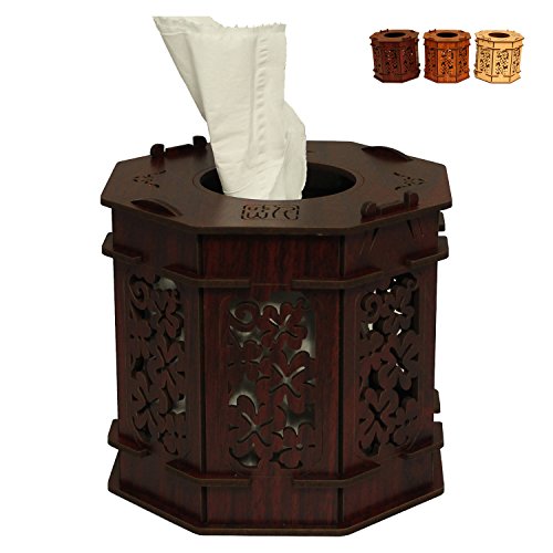 Tissue box storage function dresser storage box wood retro style environmental protection materials four leaf grass pattern (mahogany)