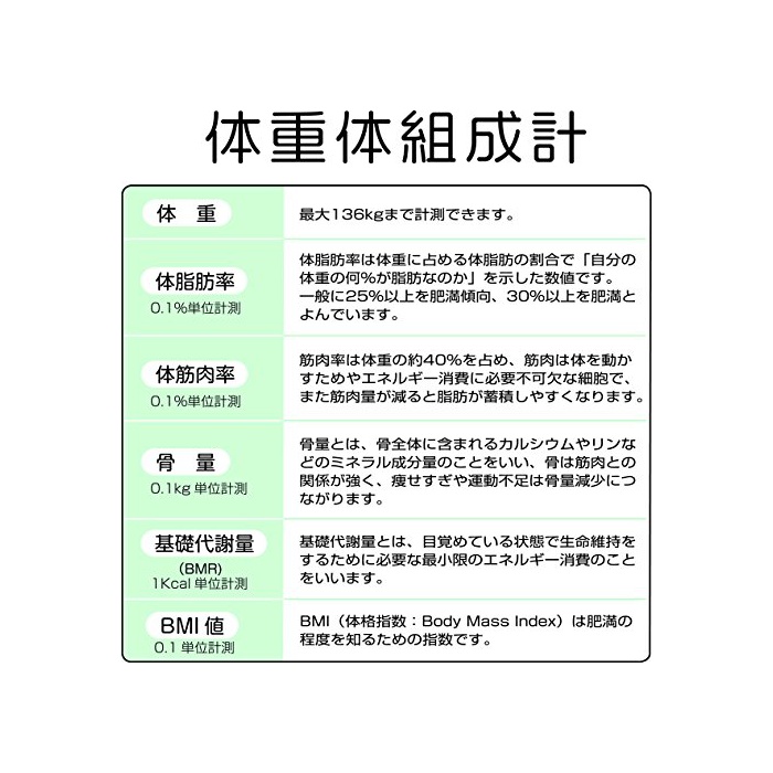 6항목 계측:체중,체지방율,체근육율,골분량,기초 대사량,BMI치