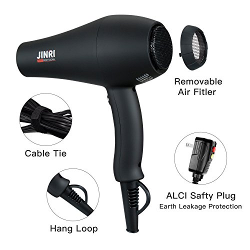Jinri Hair Dryer Professional Salon 1875W AC Motor Negative Ionic Far Infrared Blow Dryer with Diffuser Straightenning and 2 Speed 3 Heat Setting