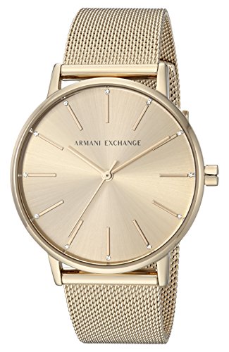 No other watch brand has stood the popularity test of time quite like Armani Exchange This Lola gold watch speaks tractability with a touch of elegance and style The popular stainless steel gold case and gold stainless-steel band combo will work with every outfit and will quickly become a staple piece in any womens wardrobe With a 50 meters 165 feet 5 atm water resistance and durable mineral crystal this watch will keep on ticking and looking great even on your toughest days Set the trends with your impeccable fashion sense and amp up your wardrobe with the latest from Armani Exchange Lola watchesFeature