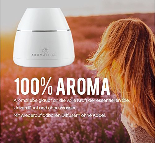 UNGLAUBLICH MOBIL - Aromatherapie fur wirklich uberall. Der uber USB wiederaufladbare Diffusor von Aromaliebe machts moglich: Ob am Schreibtisch, im Auto oder abends auf der Couch bieten dir 50 Stunden Laufzeit eine kabellose Freiheit und Entspannung pur.