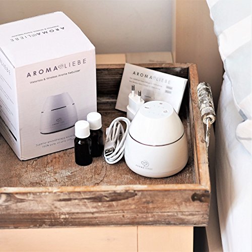 AROMALIEBE Aroma Diffuser weiss | Aroma Diffuser Auto | Akku Aroma Diffuser | wiederaufladbar per USB | akku- bzw. batteriebetrieben | ohne Wasser | Aromatherapie mit Direktverneblung | ohne H