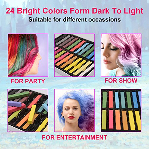 Hair Chalk for Girls, 24 Colorful Temporary Hair Color Wax for Kids, Christmas Birthday Gifts Present for 4 5 6 7 8 9 10 Years Old Girls and Up