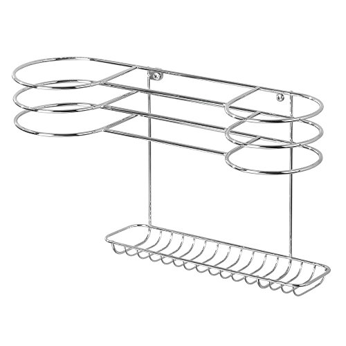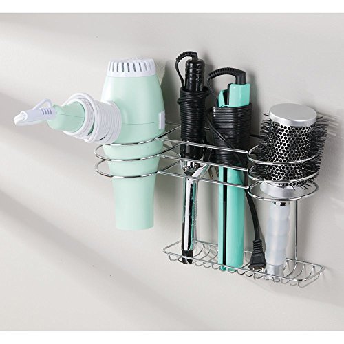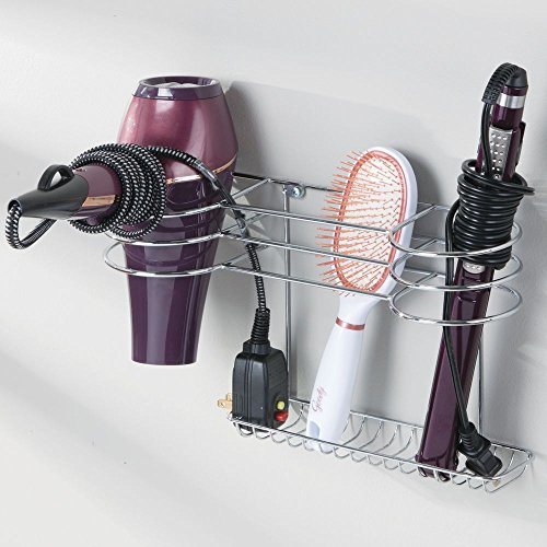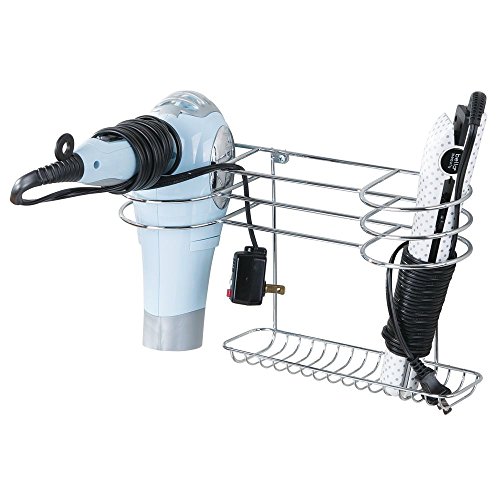 mDesign Bathroom Wall Mount Hair Tools Organizer for Curling Iron, Flat Iron, Hair Dryer – Chrome