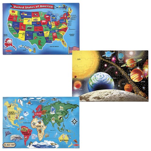 -. Title : Melissa & Doug Deluxe Wooden USA Map, Solar System and World Map Puzzle Bundle
