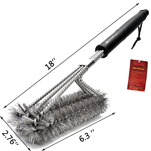 Casfuy BBQ Grill Brush – 18 Inches 3 in 1 Stainless Steel Barbecue Grill Cleaning Brush – 100% Rust Proof – with Wire Bristles & Long Handle & Strength Clip