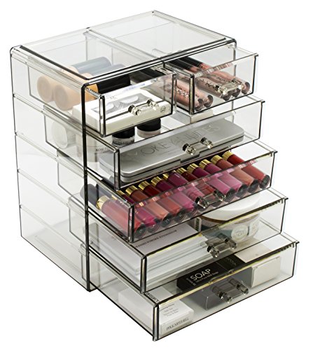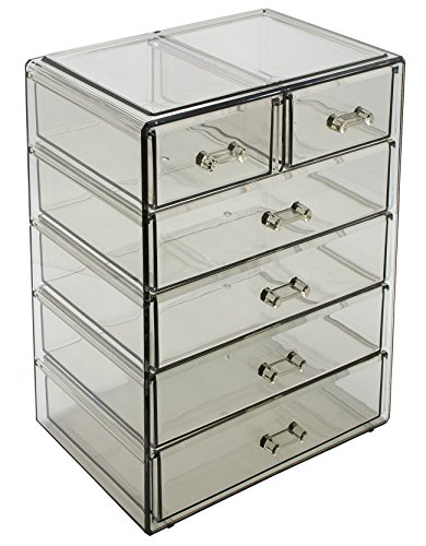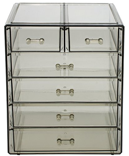 - DURABLE & LONG-LASTING — Made of durable clear plastic — Includes large drawers, small drawers, and black mesh padding inserts — Drawers slide open smoothly and handles are easy to grip — Can be used alone or to complement any organizer sets by Sorbus — Makeup NOT included — Measures approximately 9.50 " L x 6.25" W x 11.25" H