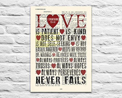 This 5x7 UNFRAMED reproduction print of a highlighted King James Bible scripture is sure to bring delight to any couple. We scan real pages from old Bibles (thus they have slight flaws and aging such as bleeding words from the other side, because the pages are so thin), which just adds to the character. The highlighted Bible page is in the King James version.