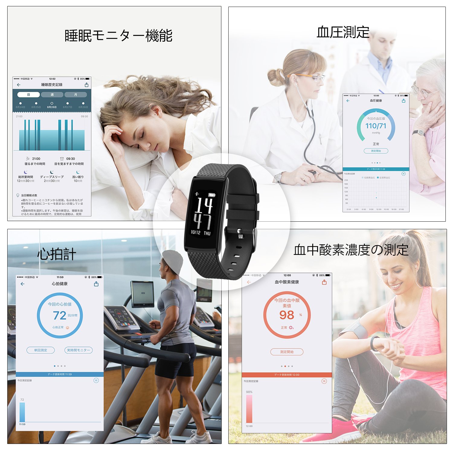 【Multi-function】 Activity quantity, pedometer, heart rate monitor, blood oxygen concentration measurement, blood pressure measurement, time display, cell search, sleep monitor function, fatigue degree measurement, camera remote control, loss prevention, GPS interlocking,