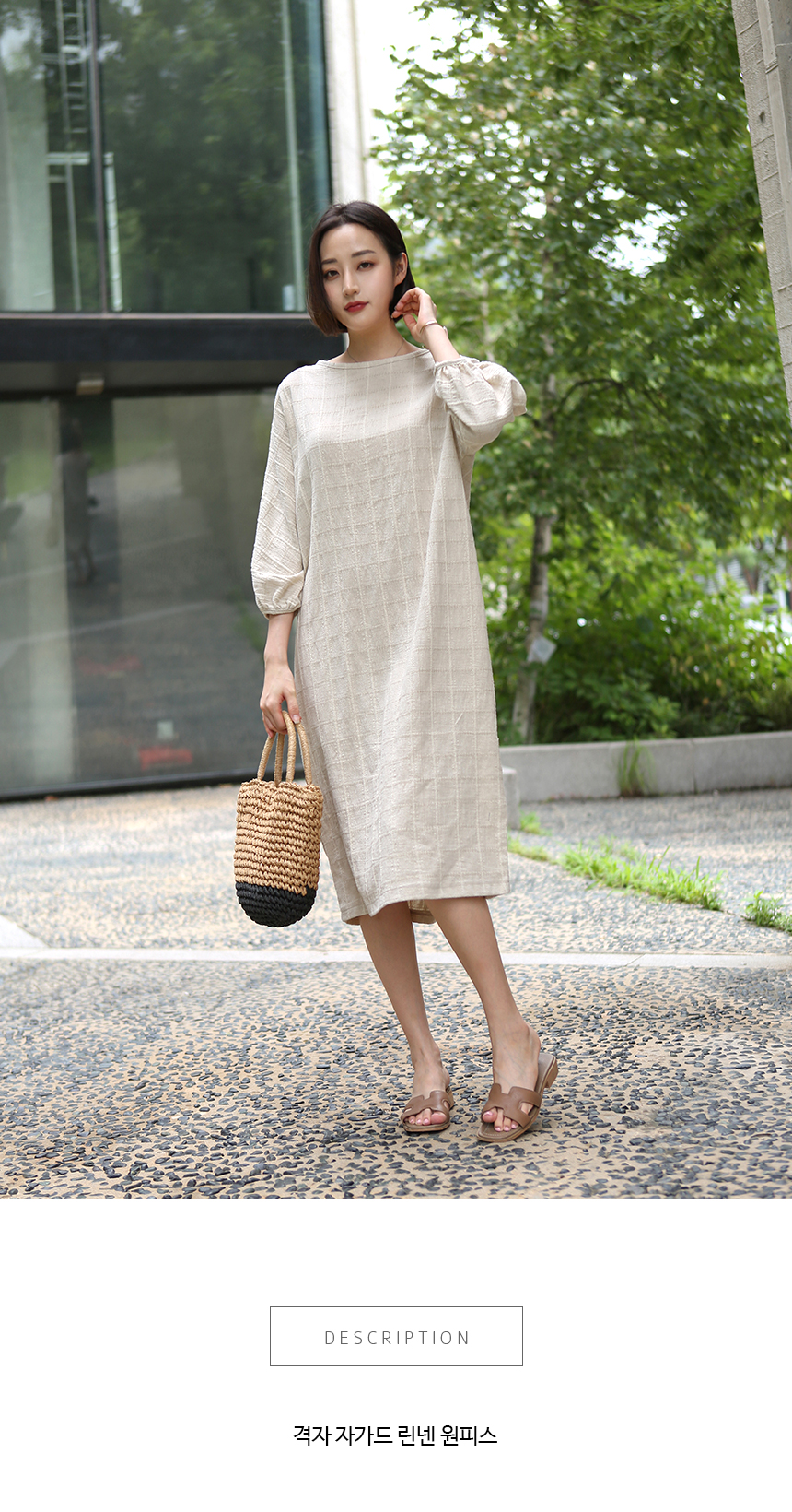 격자 패턴의 자가드 소재는 린넨, 코튼 혼방으로