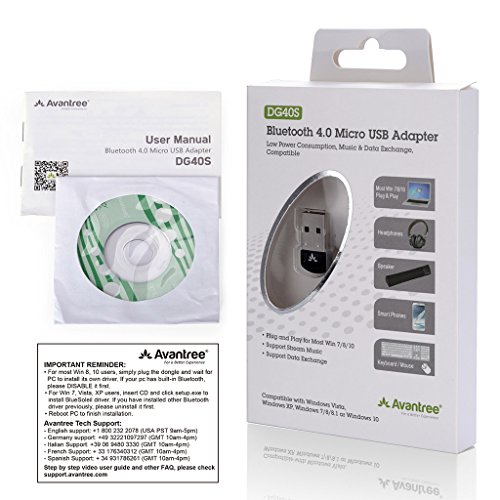 [2 Year Warranty] Avantree USB Bluetooth 4.0 Adapter for PC, Wireless Dongle, for Stereo Music, VOIP, Keyboard, Mouse, Support All Windows 10 8.1 8 7 XP vista
