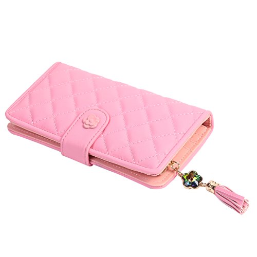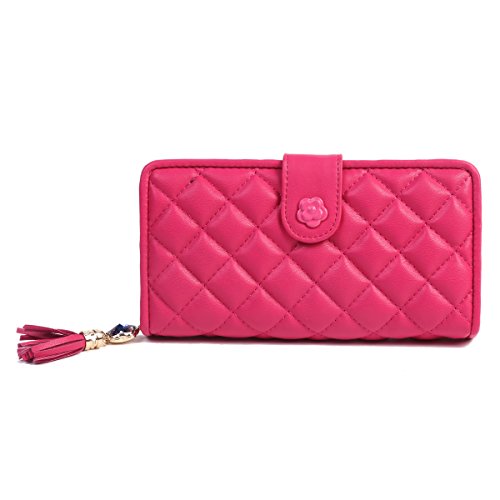 -. Title : Damara レディース 大容量 長財布 柔らかい 格子柄 花 レッド