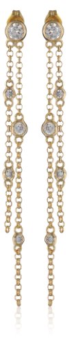 18K Yellow Gold Plated Sterling Silver Two-Tone Cubic Zirconia Long Chain Drop Earrings (2.2 cttw)