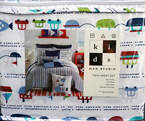 - Feature : Max Studio 4 Piece Full Sheet Set / Nautical Pattern wtih Boats, Fish and Cars on White Background / Includes 1 Flat Sheet, 1 Fitted Sheet and 2 Pillowcases / 100% Polyester, Machine Washable