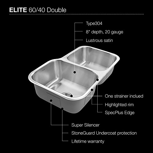 Houzer EC-3208SR-1 Elite Series Undermount Stainless Steel 60/40 Double Bowl Kitchen Sink, Small bowl Right