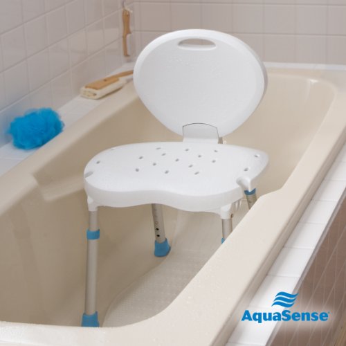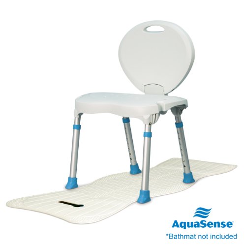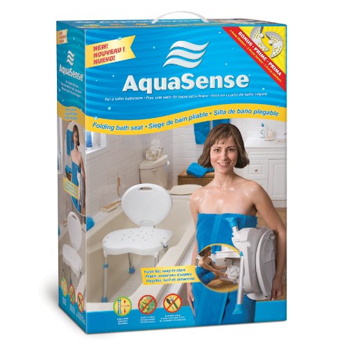 - Feature : The AquaSense Folding Bath and Shower Seat provides support to individuals who need to sit down while taking a bath or a shower / Slip resistant plastic seat with drainage holes and backrest provides safety and comfort / Adjustable legs raise or lower bath seat height while non-slip rubber safety tips provide extra stability / Fits effectively with almost any bath mat and has easy tool-free assembly / Lightweight corrosion resistant aluminum frame with 250 lb. (113 kg) weight capacity