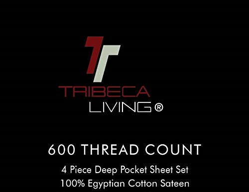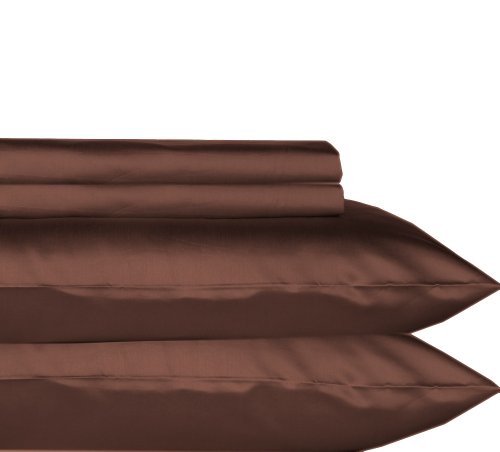 Tribeca Living 600 Thread Count Egyptian Cotton Sateen Extra Deep Pocket Sheet Set, King, Chocolate