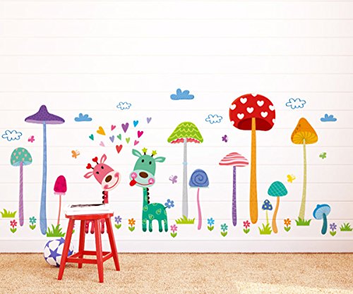 -. Title : ufengke Cartoon Animals Giraffe and Mushroom Forest Wall Decals, Children's Room Nursery Removable Wall Stickers Murals