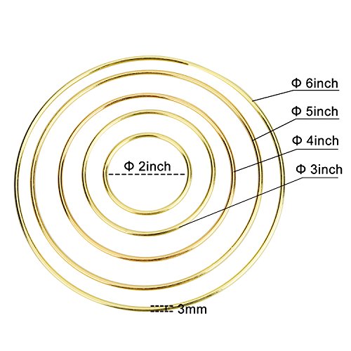 eBoot 10 Pieces Metal Rings Metal Hoops for Dream Catcher, 5 Sizes (Gold)
