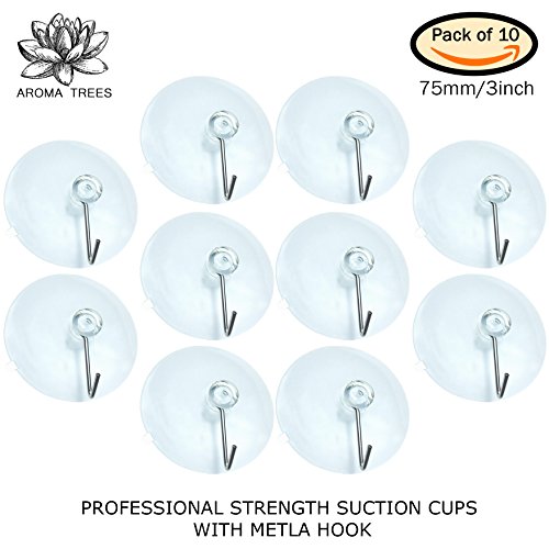Aroma trees - Large 75mm Suction Cup with Metal Hooks, Holds Up to 30lbs (Large - 10 Packs)
