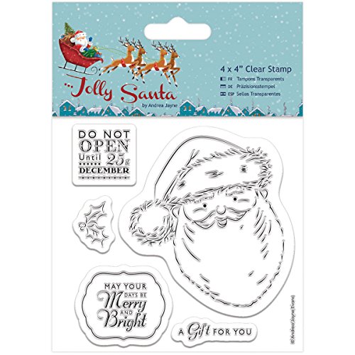 -. Feature : Papermania-Jolly Santa Clear Stamps / Add a beautiful design to your paper crafts with these easy to use stamps six clear stamps on one 4 x / Design - Santa / Dimensions - 6.1 L x 4.6 W x 0.2 H in. / Package Quantity: 1