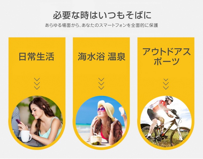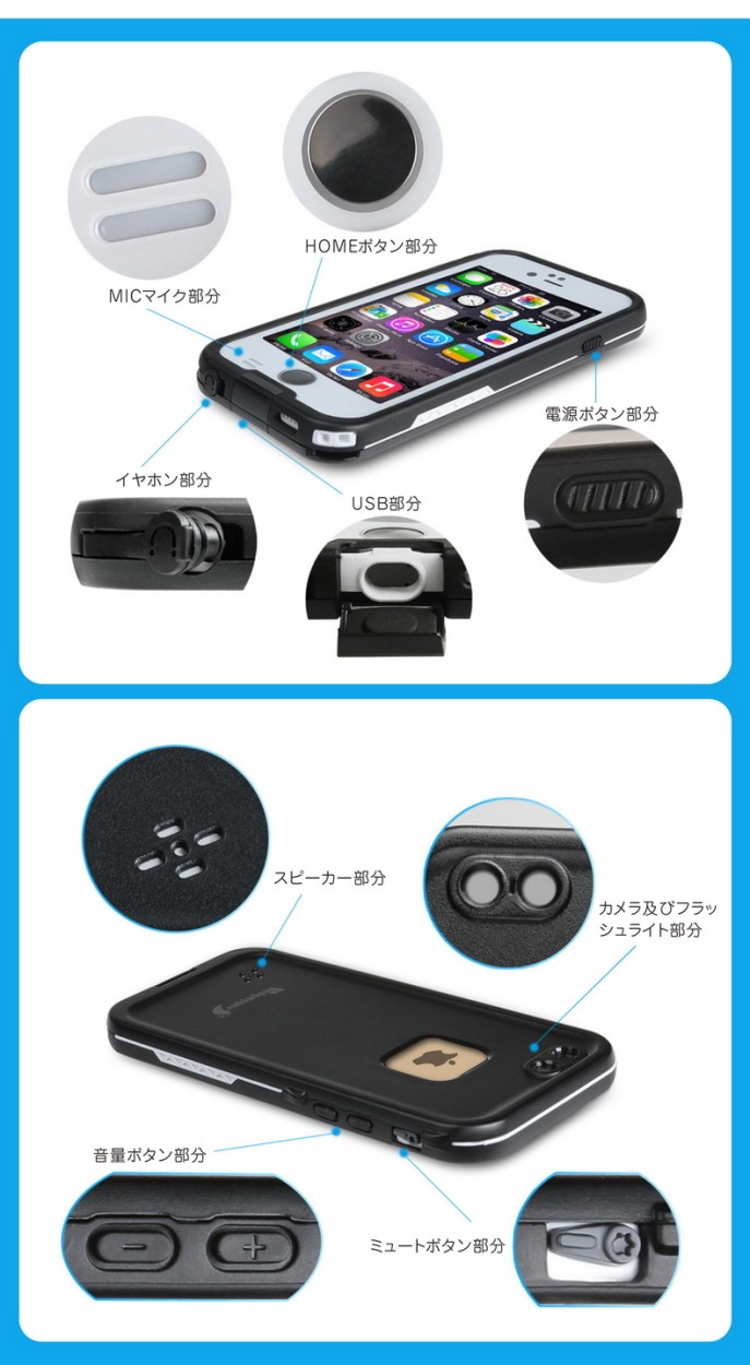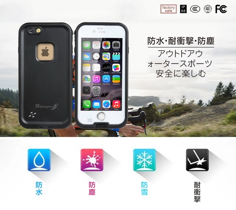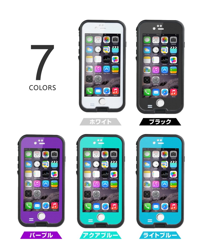 材質:PC製品特徴:・防水・防塵の最高水準「IP68」を取得・水深約2mまで完全防水・高さ約2mからの落下衝撃にも耐える・ケース装着時に全てのボタン機能が使用可能・指紋認証「Touch ID」対応・安全安心の「CCC」認証取得製品・「ISO 9001」認証取得製品・「FCC」認証取得製品対応機種:・iPhone6・iPhone6sカラー(全7色)(1)ホワイト(2)ブラック(3)パープル(4)アクアブルー(5)ライトブルー(6)レッド(7)ピンク防水・防塵の最高水準「IP68」という高性能でありながら、薄型設計を可能にした画期的なiPhoneケース。完全防水なので海、川、レジャー、お風呂などで使用可能。約2mからの落下にも耐える耐衝撃設計なので、スポーツやアウトドアにも最適。ストラップホール付きなので、首や手首から下げてご利用いただけます。(ストラップ別売り)指紋認証「Touch ID」対応で、スピーカーや音量ボタン、電源ボタンなどiPhone本来の機能も損ないません。