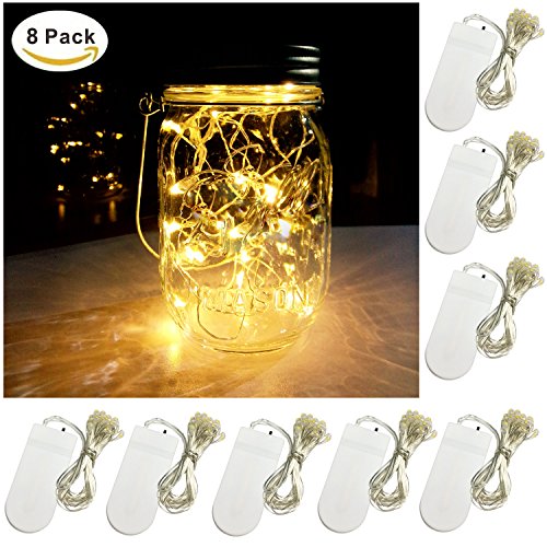 -. Title : 8 PCS LED String Light, Battery Operated 20 Micro Starry LED Silver Copper Wire Lights, 6.5 Feet/2M,Best for Mason Jar Lights,Moon Lights,Party,Wedding and Home Decoration