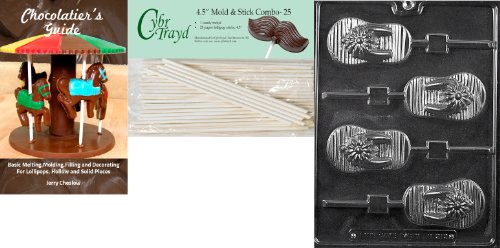 Cybrtrayd 'Flip-Flop Lolly' Miscellaneous Chocolate Candy Mold with 25 4.5-Inch Lollipop Sticks and Chocolatier's Guide