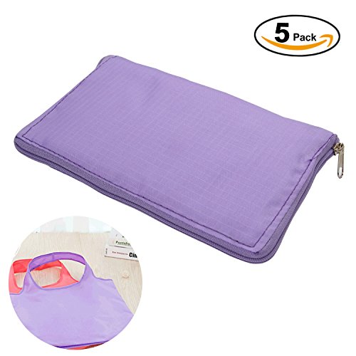 DuranRyan Reusable Grocery Foldable Wallet Style Bag,Tote Reusable Dacron Shopping Bags,Washable /Durable and Lightweight/Waterproof,5 Pack