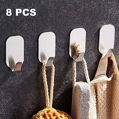 Mellewell 8 PCS Self Adhesive Key Hooks Wall Towel Hangers, Stainless Steel Brushed Nickel