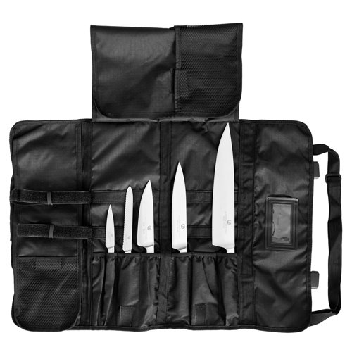 Studio : The Culinary Institute of America Publisher : The Culinary Institute of America Binding : Health and Beauty Product Description This sturdy canvas cutlery roll holds eleven knife pockets, two storage pouches, and a removable strap, for safe and easy storage and transport of knives and other accessories. CIA products were created by a team of Certified Master Chefs from the Culinary Institute of America, with the goal of producing well-crafted cookware of the highest quality that would be appreciated and used by home and professional chefs alike. Please Note: Knives or other utensils are NOT included in the sale. 0
