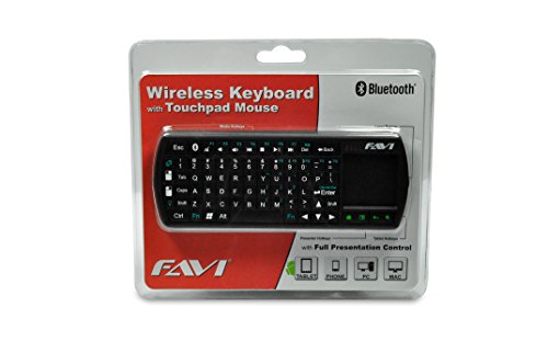 -. Binding : Personal Computers -. Brand : FAVI -. Color : Black -. EAN : 0817383021931 -. Feature : US Version (Includes Warranty) - Only products shipped from and sold by authorized resellers such as Amazon.com can ensure that you will be receiving products that have a valid warranty. / Type faster and more accurately. Familiar android buttons and FAVI screen swipe touchpad offers fast and fluid tablet navigation. Music / Video hotkeys gives you quick access to your favorite music playlist or video collection. / Touchpad features full mouse control as well as "tap to click" and page scroll. Works great for office presentations with its built-in laser pointer and PowerPoint slide buttons. / No Bluetooth on your PC or laptop? No problem...a Bluetooth USB receiver is included (stores neatly inside device when not in use). Includes backlit keys for use in the dark. / Wireless Range: 30 feet -. Label : Computer Keyboards -. Manufacturer : Computer Keyboards -. Model : FE02BT-US15 -. MPN : FE02BT-US15 -. PackageQuantity : 1 -. PartNumber : FE02BT-US15 -. ProductGroup : Personal Computer -. ProductTypeName : COMPUTER_INPUT_DEVICE -. Publisher : Computer Keyboards -. Studio : Computer Keyboards -. Title : FAVI Mini Bluetooth Keyboard with Laser Pointer and Backlit Keys (FE02BT-US15) -. UPC : 817383021931 -. Warranty : 1 Year Parts/Labor