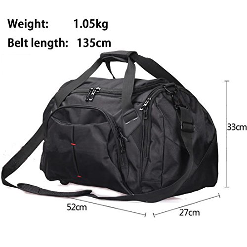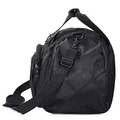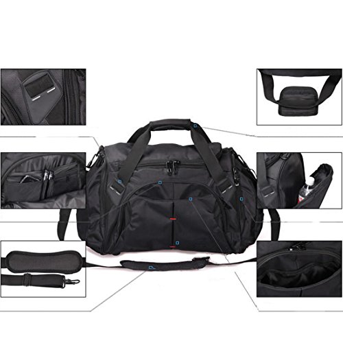 Product Description Men's Travel Gear Luggage Duffel Totes Sports Gym Bag Shoulder Overnight bag Intended Use: GYM, SPORTS, TRAVEL, LUGGAGE, CARRY-ON BAG, HIKING AND CAMPING. Material: 600D Polyester w/ vinyl backing. Features: Large zippered main compartment, two end zippered pockets, front zippered pocket, handle removable shoulder strap. Package inlcude: 1 x Duffel bag