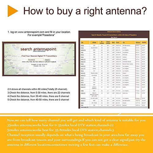 The Best Amplified Indoor HDTV Antenna to Receive Signals from Broadcast Towers -- The Bamshoot Indoor HDTV Antenna has a 50-plus-miles range rating. In our metropolitan location tests, However, That's more than the average channels received by our amplified antennas, better than every other antennas we've tested.( Warm Tips: Before checkout your order, please login the site AntennaWeb.org to see the position of broadcasters in your area )