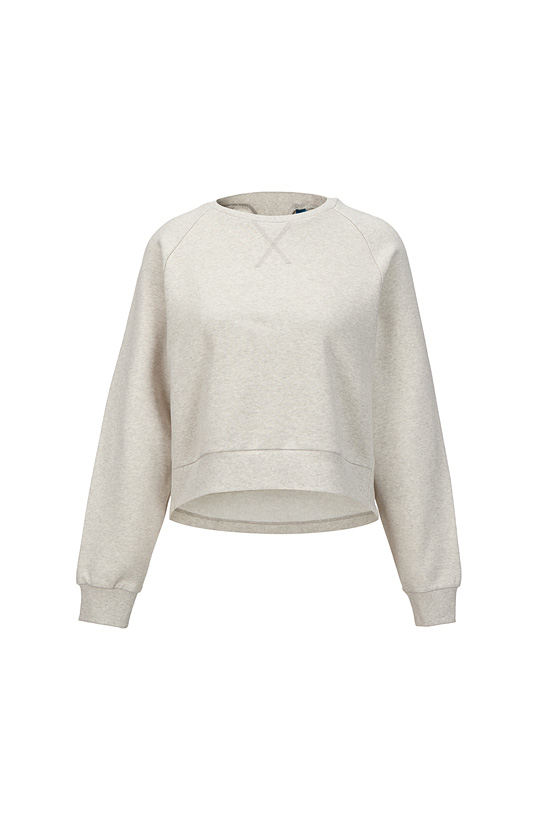 - 여성스러운 어깨 라인을 살린 레글런 소매의 에고 여성 크롭 맨투맨 티셔츠.