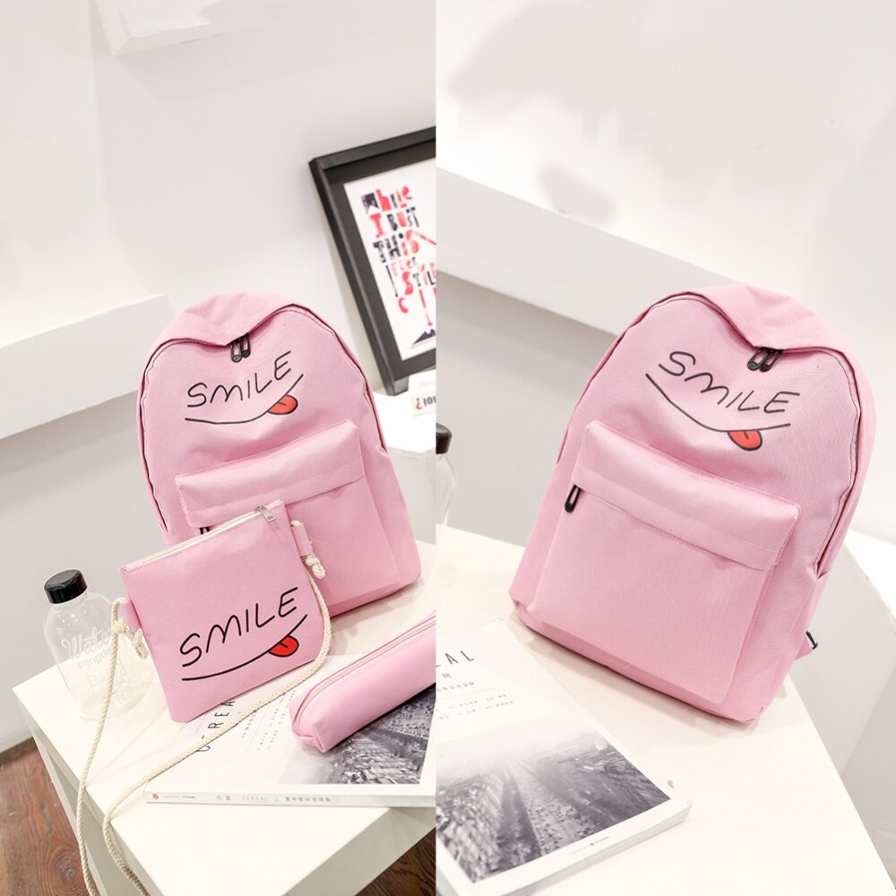 2017 New 3pcs Girls Canvas Casual Backpack School Bag Shoulder Crossbody Bag Pen Bag