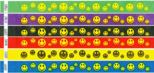 -. Title : Tyvek Happy Face Wristbands - 6 Assorted Colors - 500 Wristbands PER Pack - 6 Packs - 3,000 Wristbands in Total (National Bingo)