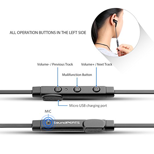 -. Title : SoundPEATS Bluetooth Headphones Magnetic Wireless Earbuds Sport In-Ear Sweatproof Earphones with Mic (Bluetooth 4.1, aptx, 6 Hours Play Time, Secure Fit Design)