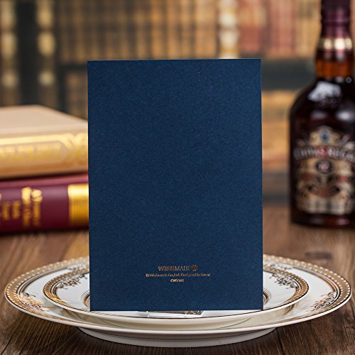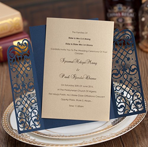Wishmade 50x Navy Blue Laser Cut Gate Fold Invitations Cards For Wedding Party Birthday Engagement Bridal Shower CW5102