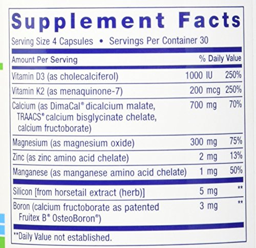 As our bodies age, this bone density is lost. As the relative hormone levels shift in midlife - more drastically in women than in men - bone mass begins to dwindle. Some bone is already being lost by the time women reach menopause, but the rate of loss can increase up to tenfold during the first five years after menopause. Bone density loss is not just associated with calcium deficiency, but also with an insufficient intake of a host of other nutrients including magnesium and vitamin D3. In order for calcium to help maintain healthy bones, adequate amounts of vitamin D3, zinc, magnesium, manganese, and other nutrients should be available so that calcium and phosphorus can be incorporated into the bone matrix. Additionally, many forms of calcium are not particularly well absorbed. While loss of bone density is more commonly experienced by women, aging men can also have this issue. Both men and women may experience significant deficits of magnesium if they do not supplement. Bone Restore now contains magnesium. Magnesium is not only needed to maintain strong bones, but it is vital to promoting a healthy vascular system. In fact, magnesium is critical for facilitating hundreds of reactions that our bodies require to maintain optimal health. To overcome the problems that preclude aging adults from achieving optimal calcium status, Life Extension offers a proprietary comprehensive mineral formula called Bone Restore which has been designed to support healthy bone density and strength. Bone Restore provides 700 mg of 3 types of calcium, along with the critically important nutrients magnesium, boron, zinc, silicon, manganese and vitamin D3 needed for healthy bones. In fact, the boron in this formula, called FruiteX B® OsteoBoron®, is a calcium/carbohydrate/boron complex, similar to what is found in fruits and vegetables and is more bioavailable than boron citrate. Scientific research has established the beneficial effects of boron on the strength of bones and joints.