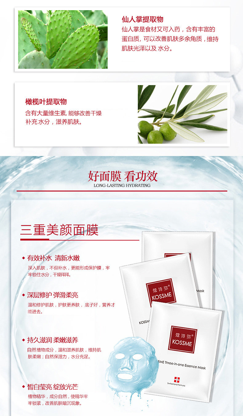 蔻诗弥 三重美颜精华面膜贴5片装春夏补水保湿舒缓提亮弹润护肤品