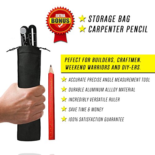 Angleizer Template Tool Premium Aluminum Alloy Pro Precision - Multi Angle Measuring Ruler | Accurate, Durable, Perfect Solution | BONUS Carpenter Pencil and Storage Pouch included