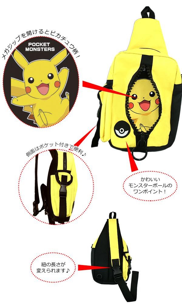 メガジップの内生地は、ピカチュウ柄になっています。背負いやすくて両手もあくので身軽にお使いいただけます。